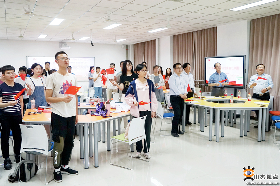 [本站讯]5月23日晚,政治学与公共管理学院2018级政治学本科班在青岛校区举办“以青春之我创造青春之中国”纪念新中国成立七十华诞主题团日活动。校党委副书记、青岛校区党工委书记张永兵参加活动,并为同学们讲授主题团课。