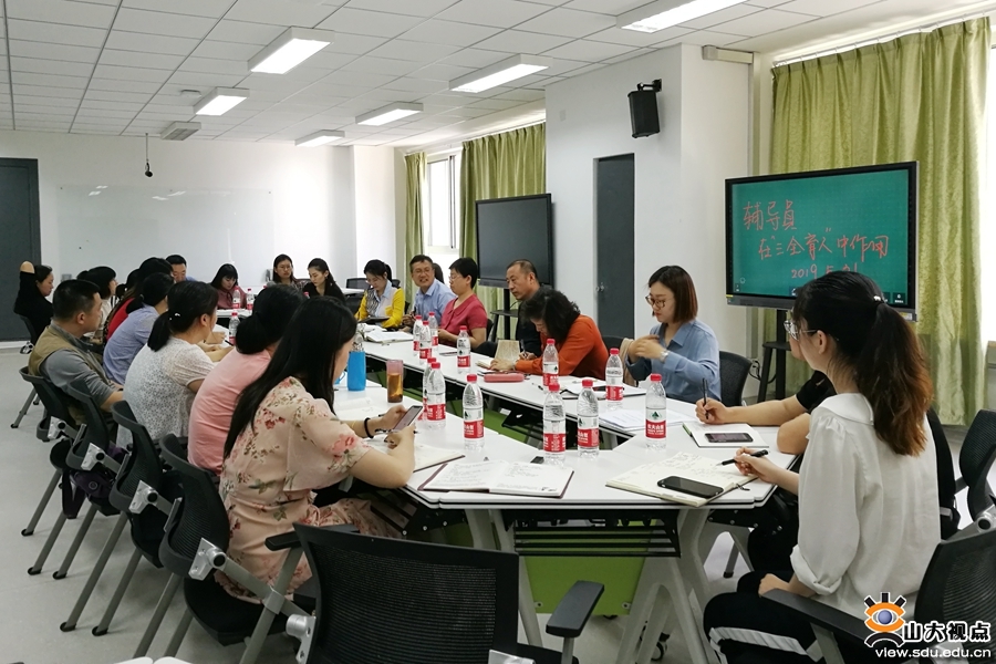 遵循研究生成长成才规律、完善育人体系,推进协同育人。由姜楠召集、齐山华主持、近30名研究生辅导员和研工部工作人员组成的研讨小组,围绕“如何发挥研究生辅导员在三全育人工作中的作用”“如何构建研究生综合评价指标体系”“如何开展研究生劳育”等议题交流经验,并提出问题与思考。党委研究生工作部部长鲁统超、副部长高弟参与讨论并作总结发言。鲁统超就科学研究与立德树人的辩证关系、破解“三全育人”体制机制发展不平衡的问题、构建团结和谐奋进的新型师生关系等与辅导员进行深入交流。高弟通过介绍山东大学研究生志愿服务团组建和志愿服务活动开展情况,分享了对于弘扬劳动精神、加强劳育工作的认识与思考。