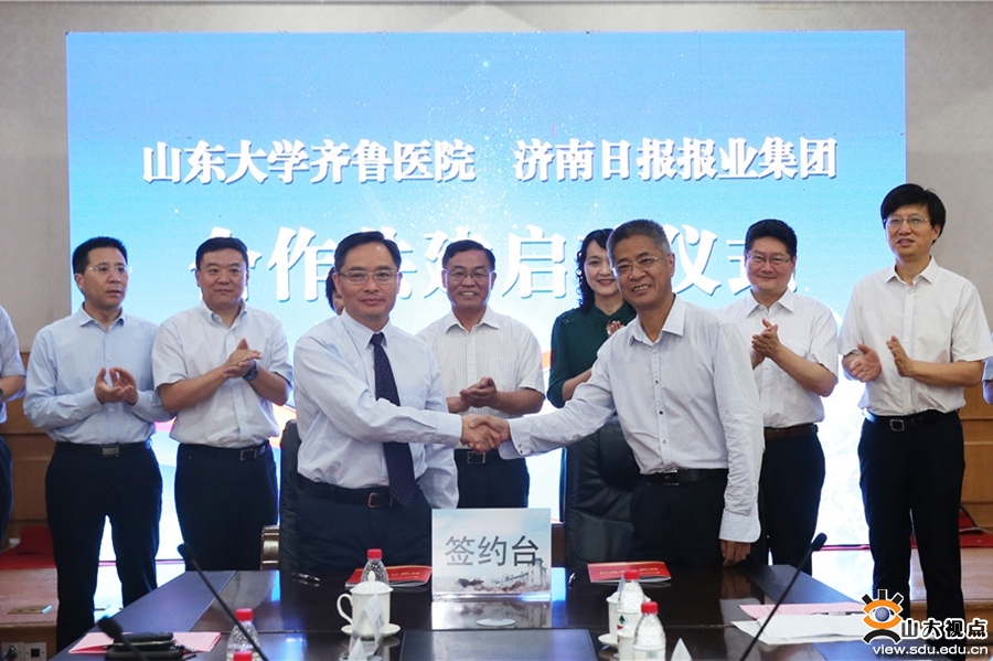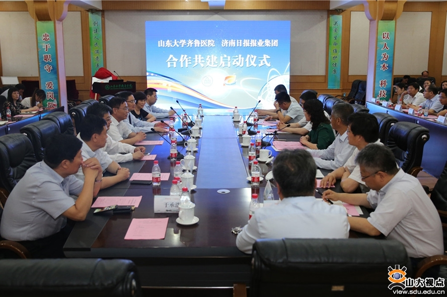 [本站讯]6月12日,山东大学齐鲁医院与济南日报报业集团合作共建启动仪式在新兴楼举行,山东大学齐鲁医学院党工委书记、齐鲁医院党委书记侯俊平,济南日报报业集团董事长、党委书记、济南日报社社长马利出席会议并讲话。济南日报报业集团总编辑、副董事长、党委副书记张楠,集团副总编辑马凯,集团副总编辑樊祥钦,集团执行副总编辑赵治国;齐鲁医院党委副书记苏华,党委副书记、纪委书记陈莹颖,总会计师刘庆,副院长田辉,院党委委员、副院级领导张万民出席会议,党委副书记林亚杰主持会议。