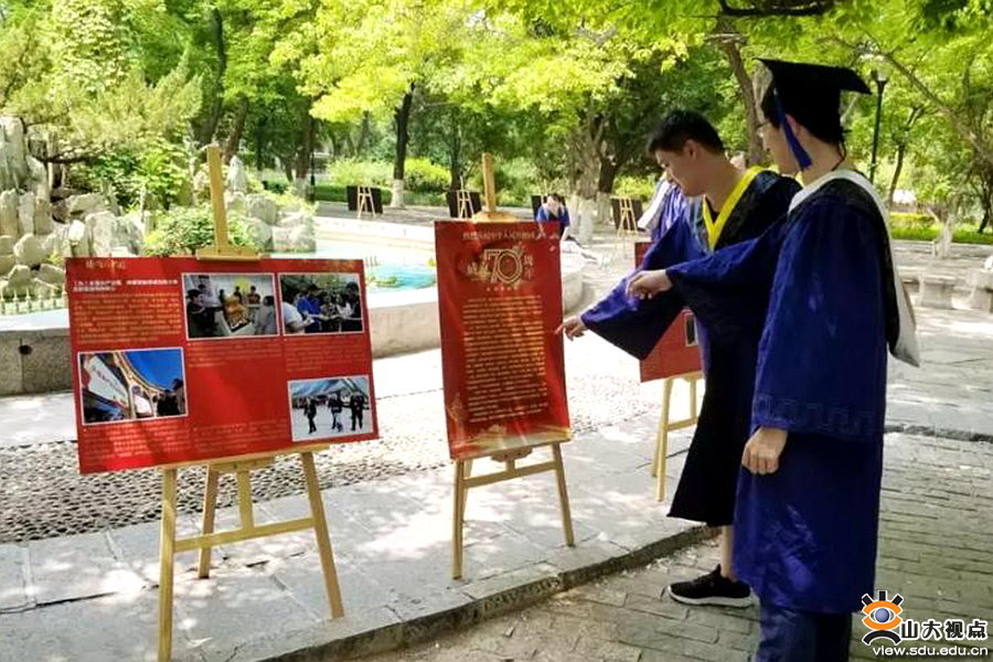 6月15日,庆祝中华人民共和国成立七十周年图片展在趵突泉校区中心花园拉开帷幕。展览用24幅代表性的展板,分十个阶段向毕业生展现了七十年来中国的腾飞历程。此次活动旨在通过图片展的方式为毕业生上好“最后一课”,引导广大毕业生正确认识时代责任和历史使命,努力成为担当民族复兴大任的时代新人。