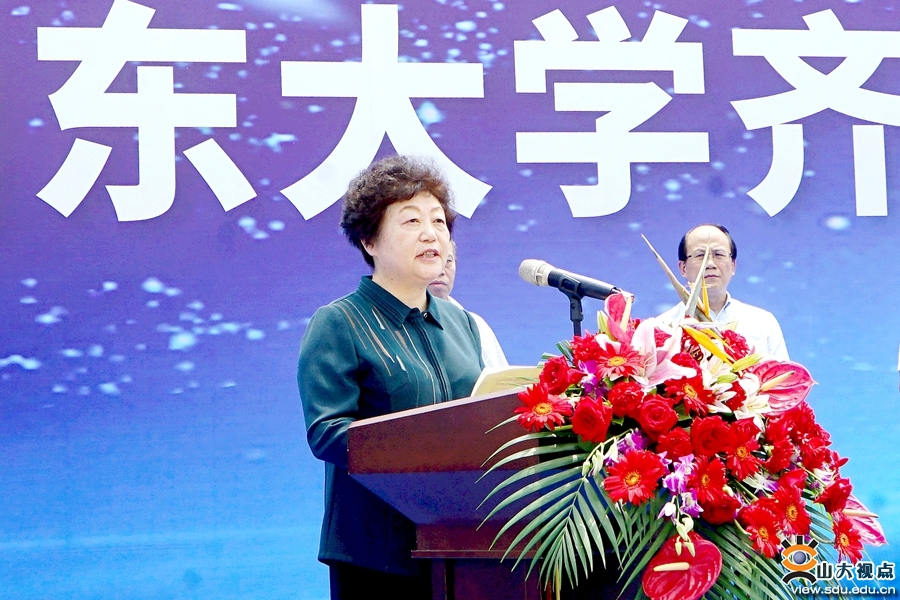 樊丽明在讲话中指出,山东大学齐鲁医院蓝谷医院奠基仪式举行,不仅是山东大学深度参与蓝谷融合发展的品牌工程,也是校地双方推进共建共享、实现互利共赢的重要举措。建设山东大学齐鲁医院蓝谷医院,是山东大学发挥优质医疗资源引领辐射作用、贡献地方经济社会发展的具体体现,是山东大学回馈青岛人民厚爱、努力为青岛人民健康保驾护航的生动实践。樊丽明强调,山东大学医学学科是中国近代西医教育的源头之一,一个世纪以来,齐鲁医学传承“博施济众,广智求真”的精神品格,踔厉奋发,薪火相传,综合实力显著提升,“齐鲁医学系”已成为学校服务山东“山大系”的重要内涵。山东大学齐鲁医院是齐鲁医学的重要组成部分,更是山东大学附属医院中的“旗舰店”。经过长期积淀,逐渐形成了门类齐全的学科体系、实力雄厚的人才队伍和一批国内先进的医疗、教学、科研平台,是国家重要的疑难重症诊疗中心之一,综合实力位居全国前列,品牌效应日益彰显。樊丽明希望齐鲁医院以此为契机,不断加强内涵建设,切实提升医疗服务水平,进一步擦亮“齐鲁医学”品牌,努力把医院建设成特色优势明显、深受社会信赖的医疗服务、医学研究及人才培养的高地,努力为国家卫生事业特别是“健康山东”“健康青岛”“健康即墨”作出新的更大贡献。