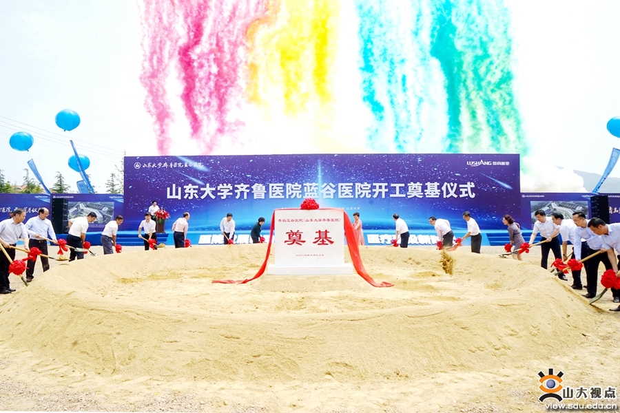 主席台人员为医院培土奠基。齐鲁医院副院长、齐鲁医院青岛医院院长焉传祝,齐鲁医院青岛医院党委书记马祥兴;青岛市卫生健康委、医疗保障局,青岛蓝谷管理局、即墨区,山东大学青岛校区、齐鲁医院、齐鲁医院青岛院区,鲁商健康产业发展股份有限公司,即墨区卫生健康局、医疗保障局、鳌山卫街道办事处,青岛蓝谷管理局国土分局,青岛鲁商蓝谷健康产业有限公司有关负责人参加仪式。