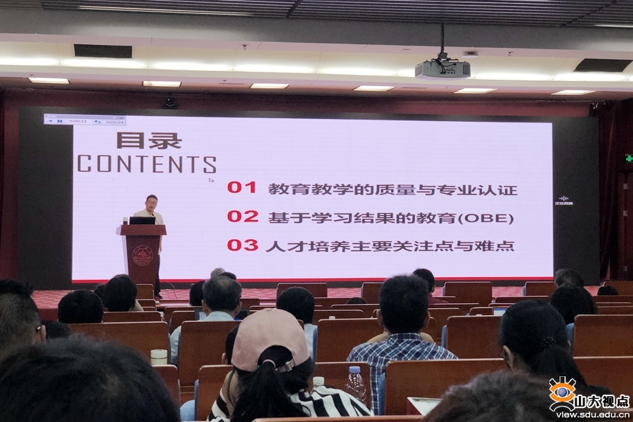 “山东省一流专业建设和专业认证研讨会”与“山东大学人才培养方案修订和专业认证研讨会”合并举行,与会人员听取了浙江大学教务处处长胡吉明、西安交通大学教务处处长徐忠锋作的主题报告,两位专家分享了各自学校在一流专业建设、培养方案优化等方面的改革进展和经验。