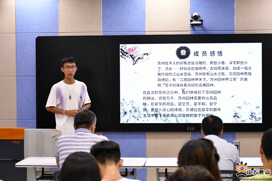 [本站讯]7月27日,山东大学2019年苏州触摸文明暑期课程举行课题汇报,同学们选取了多个课题方向进行了课题汇报。山东大学历史文化学院刘玉平教授,苏州研究院常务副院长吕明新、副院长郝立群出席活动。