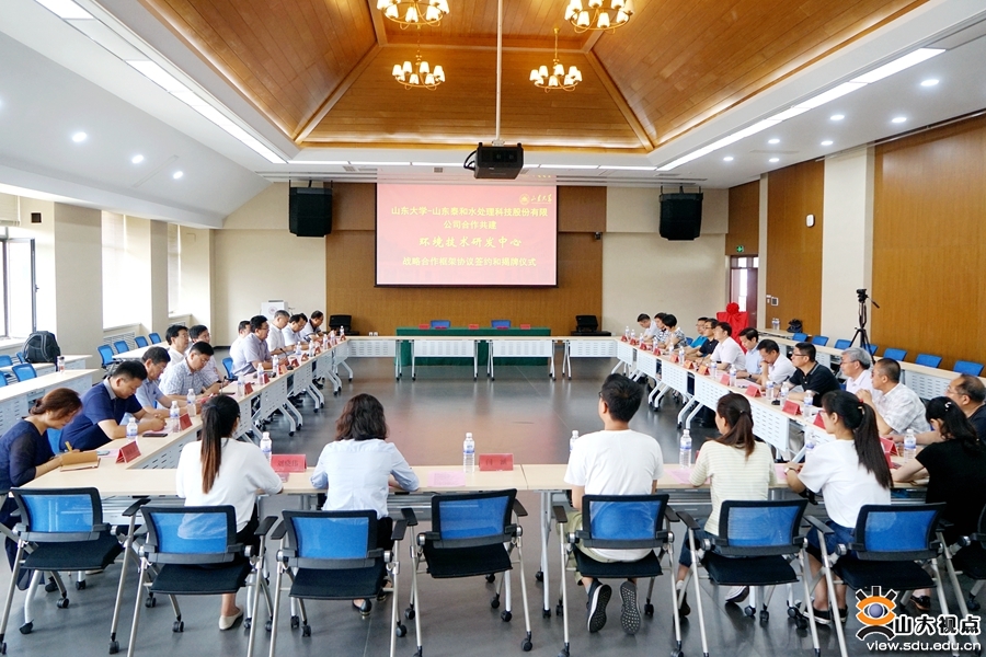 山东泰和水处理科技股份有限公司董事长兼总经理程终发表示,研发中心的组建将进一步加强校企合作的深度和广度,吸引更多科研领域的山大师生参与进来,实现强强联合、互惠共赢。环境科学与工程学院常务副院长张建与程终发签署合约。