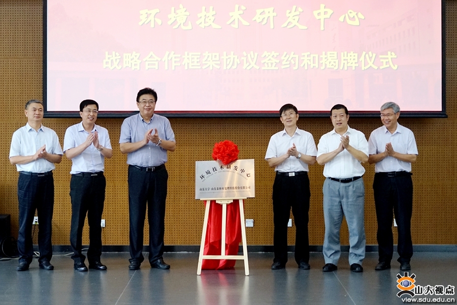 [本站讯]7月26日,山东大学-山东泰和水处理科技股份有限公司环境技术研发中心签约和揭牌仪式在青岛校区举行(以下简称研发中心)。山东大学副校长、青岛校区校长韩圣浩,枣庄市副市长周宗安出席仪式,并共同为研发中心揭牌。
