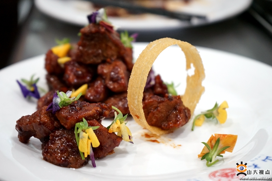 管理学院本科生龚英杰在他的山大日记中写道,中国烹饪大师、孔府菜传承人、中国兰儒孔膳文化研究院院长王兴兰老师亲自授课,从食材的准备、切法的选择,调料的用量、烤制的时间到摆盘的艺术、内在的精神,都十分精致而讲究,一丝一毫也不肯放松。“第一天的菜品是酱牛肉和黄金玉白菜,虽然手忙脚乱有些狼狈,不过也算成功了。”