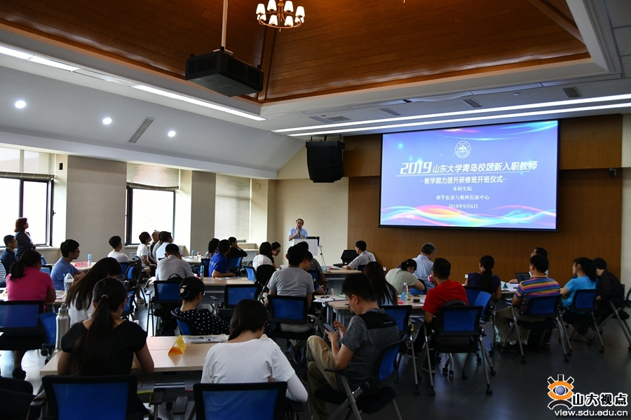 [本站讯]9月6日至9日,山东大学举行2019年青岛校区新入职教师教学能力提升研修班,来自青岛校区9个单位的47名教师参加学习。青岛校区党工委副书记郭邦礼,本科生院副院长、青岛校区本科教育办公室常务副主任王丰晓,教学促进与教师发展中心主任张树永、副主任李赛强,生命科学学院副院长张伟出席开班仪式。