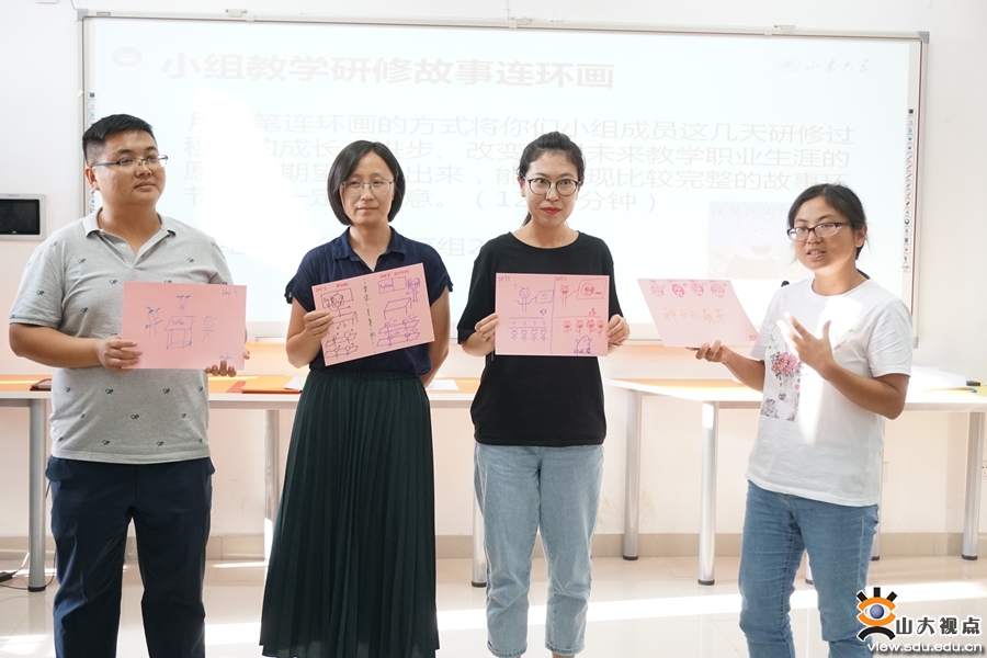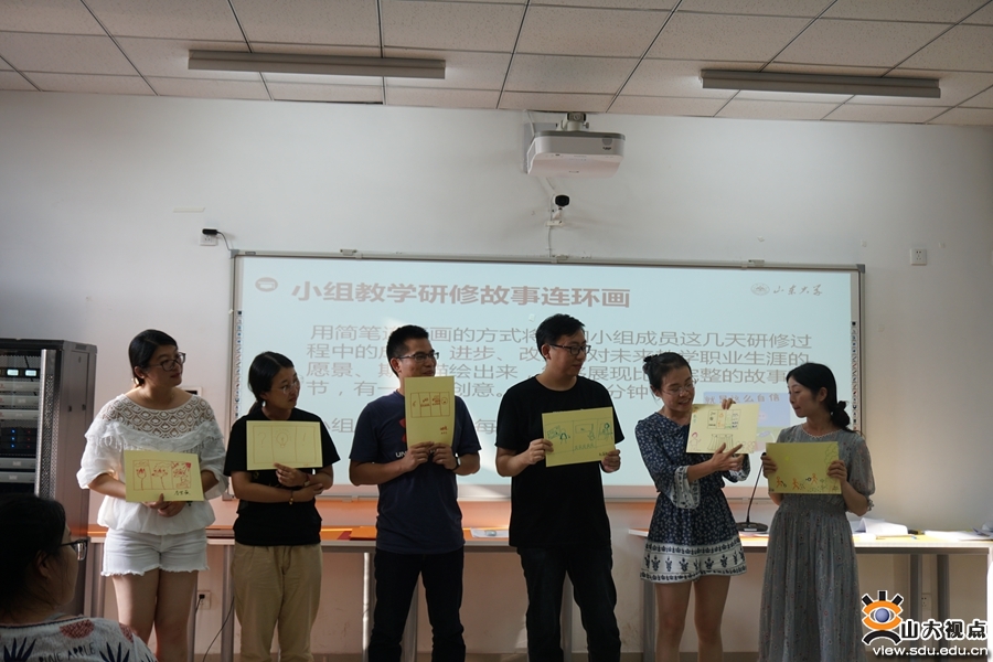 结业仪式上,学员小组用连环画形式展示了研修班学习经历的变化,纷纷表示获益良多。有的组指出研修班学习消除了原先对教学的茫然感和不自信,小组成员在各个维度都有了明显进步;有的组表明大家原有零散的教学经验方法在教学理论的指导下,得到了系统性框架性的整合;有的组认为,小组成员的教学认知和技能在这几天发生了质的变化,教学胜任力和教师职业责任感得到了很大提升。