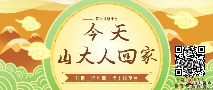 悠悠天宇旷,切切故乡情。9月13日,山东大学校友会通过微信公众平台发出中秋贺信,为天南地北的山大人寄去母校的思念与祝福。