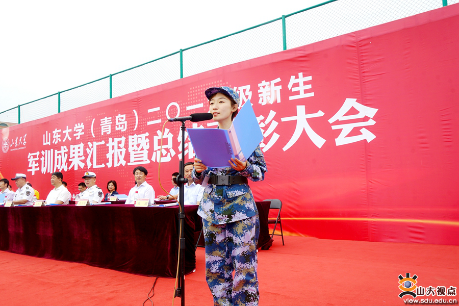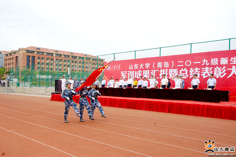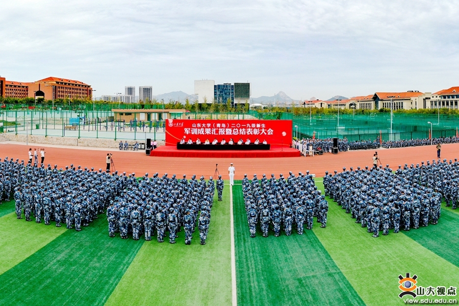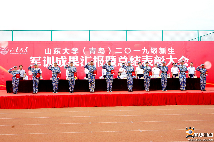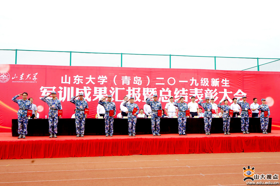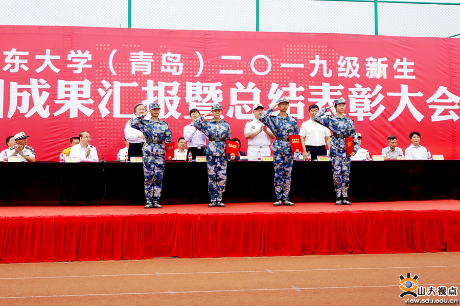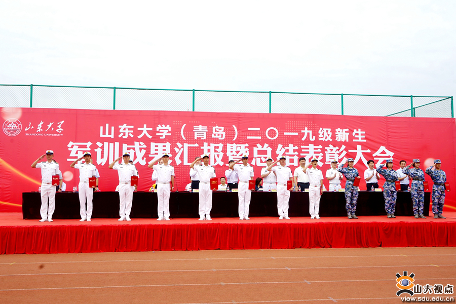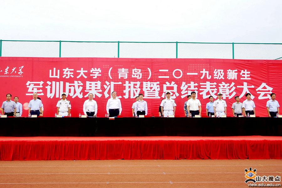 [本站讯]9月20日,山东大学(青岛)2019级新生军训成果汇报暨总结表彰大会举行。海军某部队部队管理处处长王宇航、某部队副大队长王新宇,山东大学副校长、青岛校区校长韩圣浩出席大会。