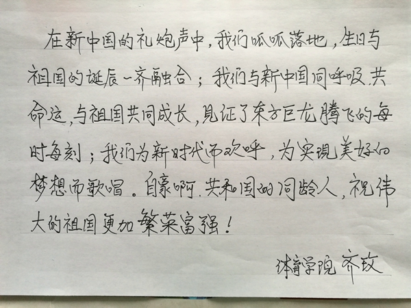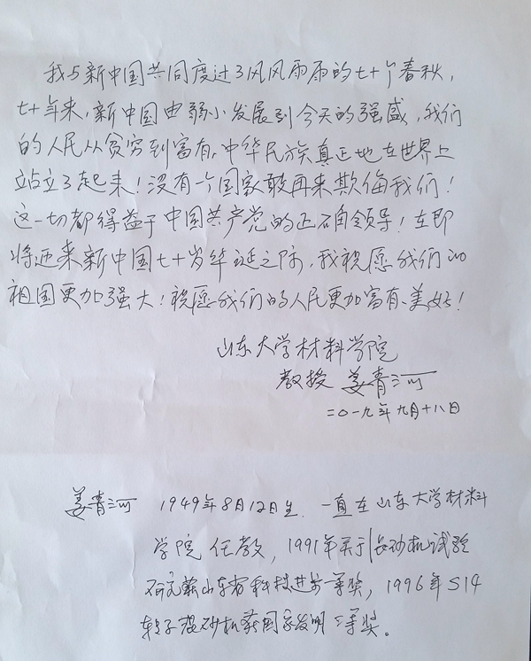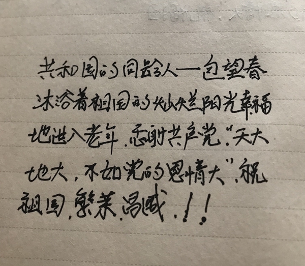 除了手签祝福,还有更多退休教职工对祖国送上了自己的真情告白: