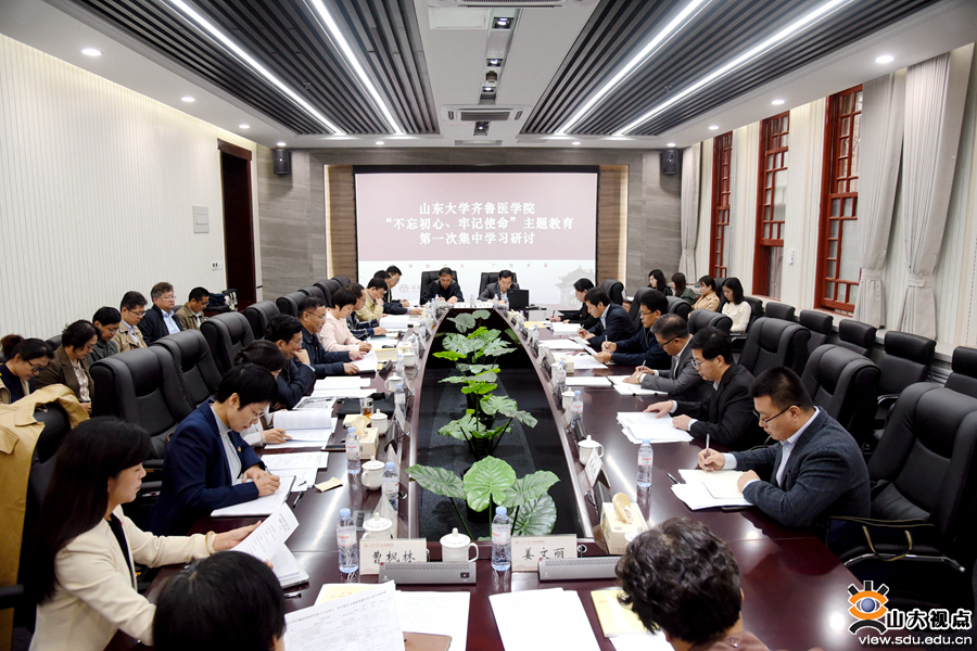 中央第四指导组成员,学校第九指导组成员,齐鲁医学院党工委理论学习中心组成员、机关各处室副处级以上领导干部,医学部分学院主要负责人参加会议。
