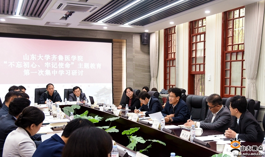 在交流发言阶段,齐鲁医学院常务副院长柳丽华、副院长贾继辉围绕学习研讨主题,结合工作实际,对开展主题教育的认识和齐鲁医学发展面临的挑战与机遇等内容作了交流讨论。