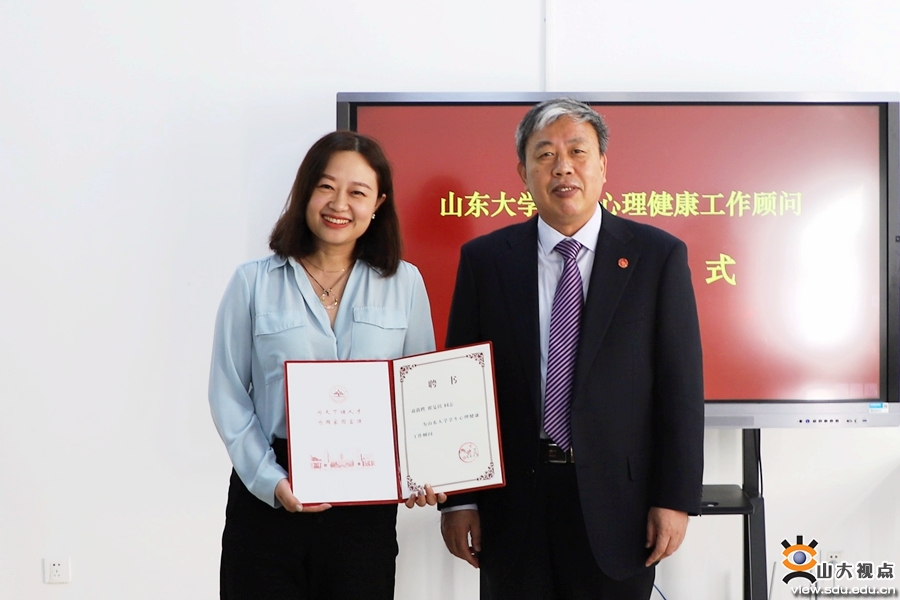 仝兴华向翟旻玥颁发聘书,并就中国文化背景下心理健康教育工作进行交流。仝兴华强调,在西方心理学应用于中国的过程中,应融入中国传统文化,发展出适用于中国本土的心理咨询方法。