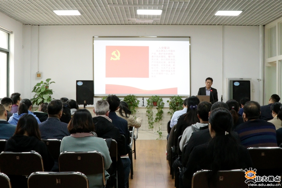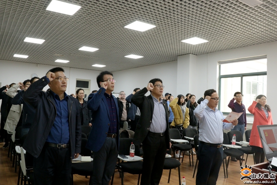 接着,由刘学刚同志领誓带领支部党员重温入党誓词,刘学刚同志结合自己在主题教育中的学习体会谈了自己初心、使命。随后,支部组织党员集体观看了《中国有了共产党》党史视频,并开展了党史、新中国史学习交流会,党员代表朱伟、孙玉显、陈军升、高媛媛、孙浩令、管晓亮分别结合学校“不忘初心、牢记使命”主题教育,以及个人思想、工作、学习实际进行了交流发言。