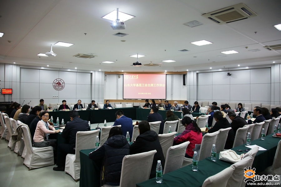 校工会主席曲波主持会议,简要总结了上学期及本学期开学以来工会的主要工作,安排部署了下一步工作。山东大学全校基层工会主席,校工会、妇委会全体成员参加会议。