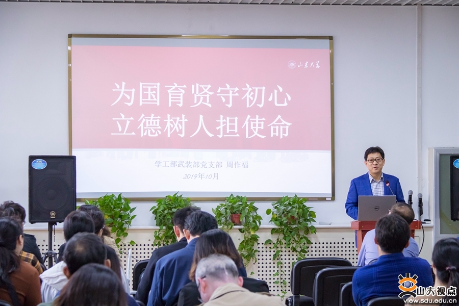 周作福介绍了“不忘初心、牢记使命”主题教育的开展背景、意义和开展情况。他结合自身近期学习研讨和调查研究情况,分享了学习体会。一是正确把握中国共产党人的初心使命,理论与实践相结合,用好马克思主义这一中国共产党人初心和使命的源头活水,将初心和使命一以贯之地体现在党的全部奋斗中,深刻领会“守初心”和“担使命”的真正内涵。二是深刻理解立德树人是新时代高等教育和学生工作的初心使命,传承和弘扬好山东大学“为国育贤”的办学初心,秉承好“为天下储人才 为国家图富强”的办学宗旨,切实回答好“高校培养什么样的人、如何培养人以及为谁培养人”,切实担负起“强校兴国”的重大使命。从党的教育方针,从总书记的关于教育的系列重要论述中去把握“立德树人”的正确含义。