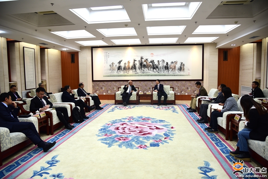 会见中,韩圣浩介绍了山东大学的发展历史、办学特色、学科布局和发展战略。他表示,实施国际化战略是学校“双一流”建设的重要途径,山东大学在“一带一路”倡议背景下不断拓展与东盟国家的合作与交流,希望中国-东盟商务协会总会、东盟工程与科学技术院继续支持山东大学与东盟高校与科研机构的多层次合作。林玉唐介绍了中国-东盟商务协会总会发展情况,总会与山东的合作项目等。他表示,总会积极推进中国与东盟在贸易、技术、教育等领域的交流合作,愿与山东大学建立起更加紧密的关系。蔡贤德简要介绍了东盟工程与科学技术院的主要职能,并表示,山东大学是中国高水平大学,期待双方在工程领域探讨合作机会。