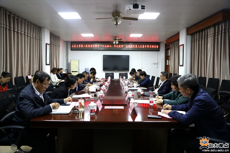 [本站讯]10月29日,山东大学第二医院领导班子开展“不忘初心、牢记使命”主题教育第三次集中学习研讨。医院党委书记袁魁昌主持会议,院长王传新出席。