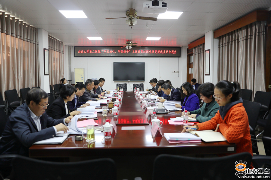 [本站讯]10月29日下午,按照“不忘初心、牢记使命”主题教育部署安排,山东大学第二医院领导班子召开“不忘初心、牢记使命”主题教育对照党章党规找差距专题会议。医院党委书记袁魁昌主持会议并带头做对照检视。山东大学“不忘初心、牢记使命”主题教育第九指导组组长郭春晓、成员张晓辉到会指导。院长王传新及其他班子成员参加会议。