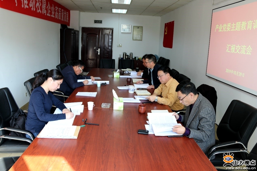 [本站讯]10月29日,按照“不忘初心、牢记使命”主题教育部署安排,产业党委领导班子召开了“不忘初心、牢记使命”主题教育调查研究成果汇报交流会。产业党委书记崇学文主持会议,学校主题教育第六指导组组长任若强和指导组成员到会指导。产业党委副书记郑波、刘永新参加会议,产业集团副总经理王帅列席会议。