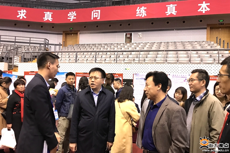 [本站讯]11月12日,山东大学2020届医药类专场招聘会在中心校区体育馆举行,来自全国19个省(直辖市、自治区)的170余家医药卫生行业用人单位参会。校党委副书记王君松到现场看望用人单位和毕业生,并就学生就业工作进行调研。