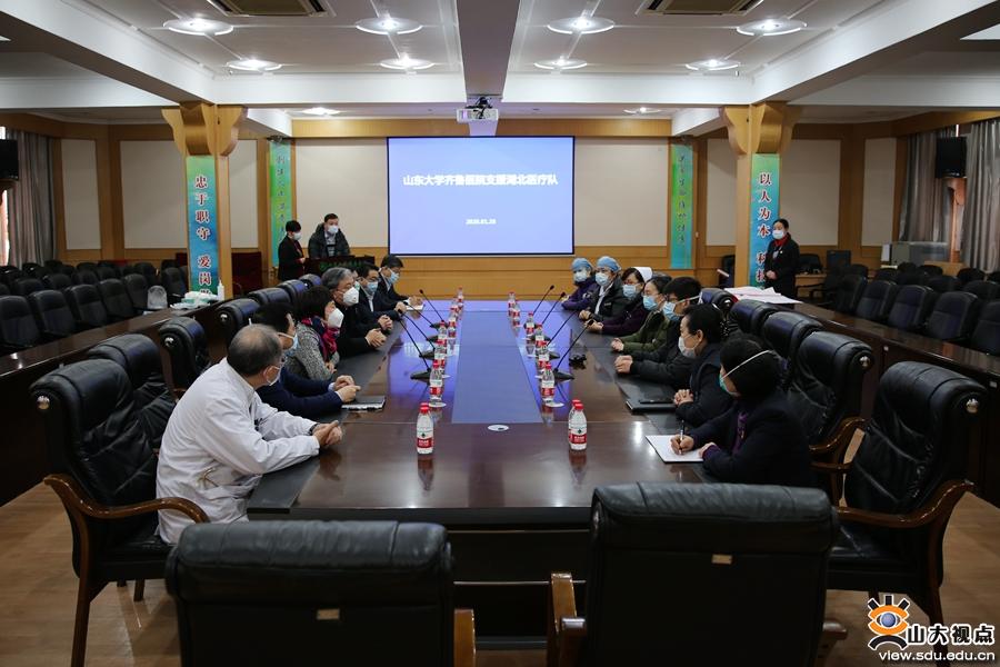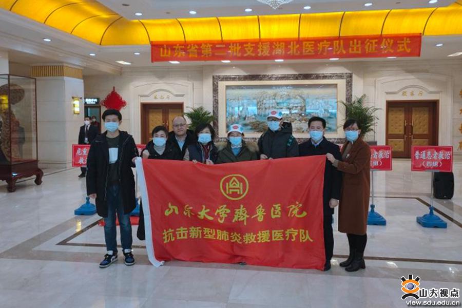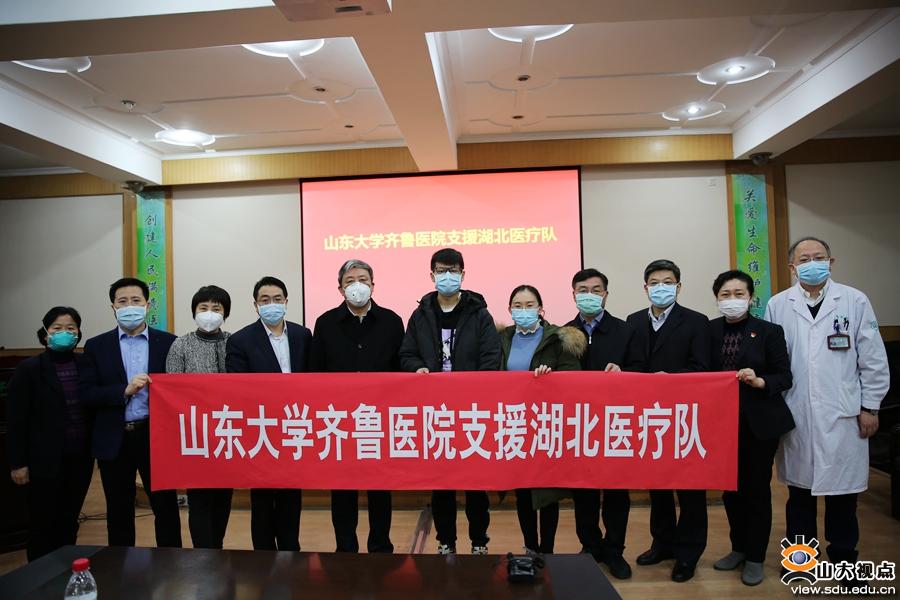 [本站讯]1月28日上午,山东大学齐鲁医院为第二批援鄂医疗队送行。山东大学党委副书记仝兴华,山东大学齐鲁医院党委书记侯俊平,山东大学齐鲁医学院常务副院长柳丽华,山东大学齐鲁医院院长陈玉国、党委副书记林亚杰、副院长田辉及医院相关部门处室负责人参加送行会。