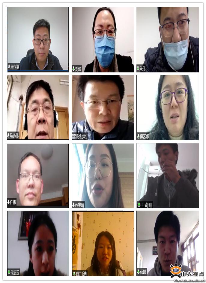 师生党员针对疫情期间党员的担当作为展开线上学习讨论。学生党员聚焦于居家防疫、学风建设、升学就业、心理健康等方面,展现了党员“防控工作从我做起”的理念,明确防控责任,学习防疫知识,有序参与防控工作,为打赢疫情攻坚战贡献青春力量,并对学校在疫情防控期间的线上教育教学安排表示感谢;部分学生党员深入同学群体进行了调研:受疫情影响,线上学习存在一些客观问题与障碍、毕业班普遍存在升学与就业问题、部分同学存在焦虑情绪与心理障碍,这些都值得关注。教工党员交流了近期学生工作的开展情况,就疫情防控背景下的学生工作和大家进行了探讨,详细介绍了近期学工战线发挥主观能动性,积极思考、主动作为、想方设法通过网络方式开展学生教育、管理、指导、服务的具体举措,并对学生党员的关切与疑虑点予以积极回应,表示疫情防控对学生工作是挑战、更是机遇,停课不停思想教育,疫情防控是推进“三全育人”的良好契机,学校广大教职医务员工会传递对山大学子的人文关怀,继续推进联系学生、“结对帮扶共建”等工作,加强教育管理服务,确保广大学生生命安全和身心健康。