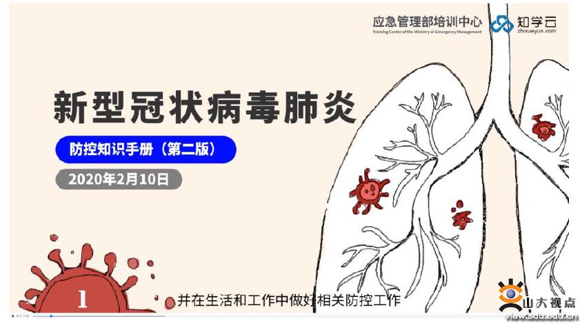新冠肺炎防控知识手册课程:考虑到当前新冠肺炎防控的严峻性以及普及防控知识的急迫性,学院联系国家应急管理部培训中心、宁夏知学云科技有限公司获得了《新型冠状病毒肺炎防控知识手册第二版》微课程的使用权及发布权,该课程共分为五个章节,包括了新型冠状病毒肺炎知识、个人防护、工作区域防护、居家防护、就医流程等内容。该课程内容权威、表达清晰、通俗易懂,课程长度适宜,可让广大观看者快速获得关于疫情防控的相关防护知识。