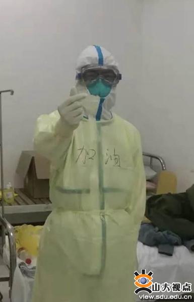 1月26日,山东大学2003级护理学校友、天津医科大学总医院感染科王晴晴护士赴武汉支援武钢二院,协助当地医生救治患者。