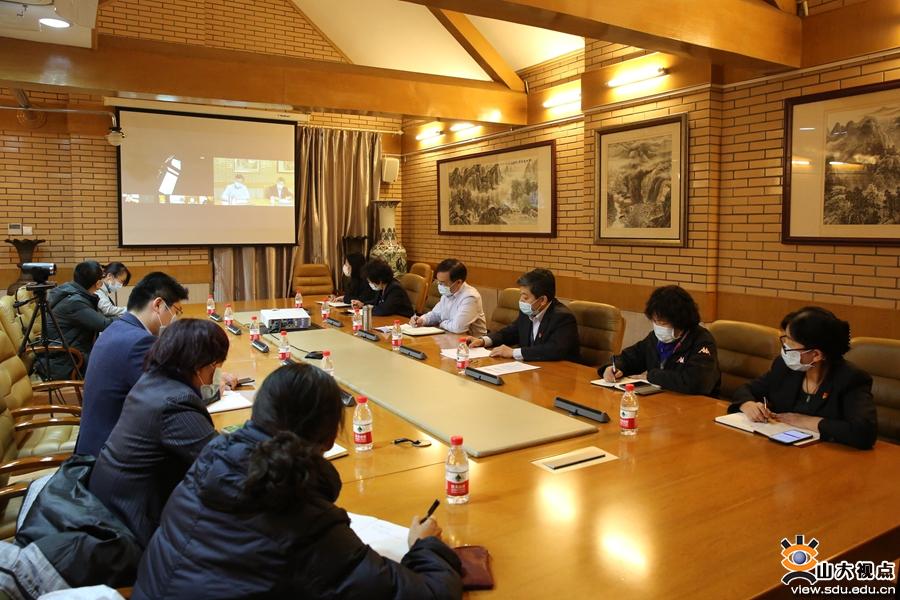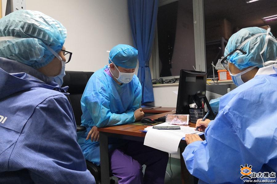 党课开始前,山东省第五批援鄂医疗队临时支部委员会书记费剑春、山东省第三批援鄂医疗队队长曲仪庆、齐鲁医院第一批援鄂医疗队队员李昊汇报了各病区工作开展、病人救治等情况。