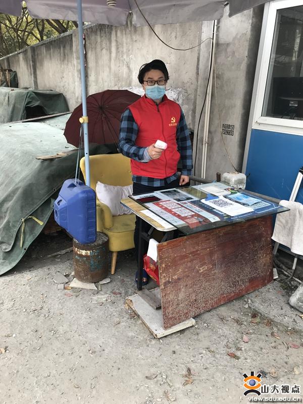 山大研究生不仅奉献自己的力量,还号召家人共同抗疫。外国语学院2018级研究生陶俊平与母亲一起在小区检查点值班。材料科学与工程学院2019级研究生高昱也主动请缨,履行党员义务,带领家人投身于济南市开放小区的社区抗疫工作中,全家人轮班值守,已在岗位连续坚持十余天。