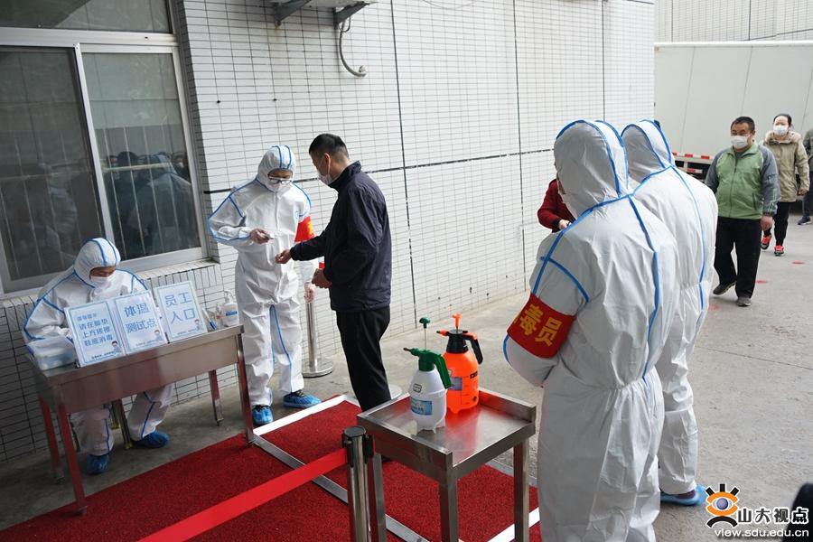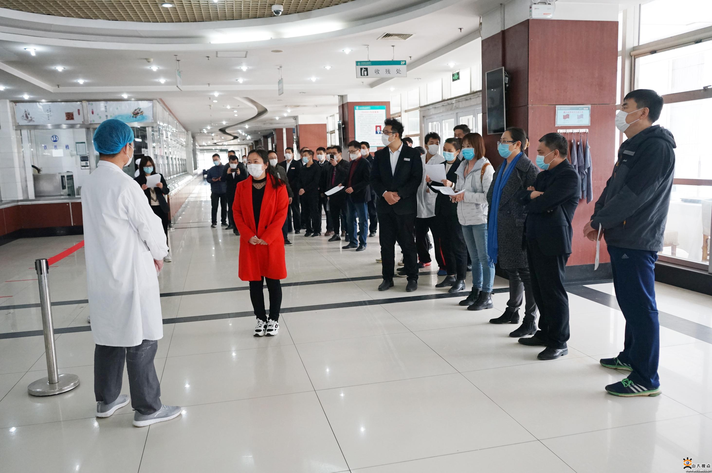 [本站讯]按照山东省高校春季开学条件核验细则要求和学校疫情防控部署,3月27日下午,饮食管理服务中心在中心校区齐园餐厅组织开展了应急处置和供餐方案流程演练。校卫生与健康中心、学工部、齐鲁医学院学生处相关负责人,以及饮食中心相关人员、各校区餐饮部相关负责人、专职食品安全管理员、订餐系统负责人共60余人观摩了演练。