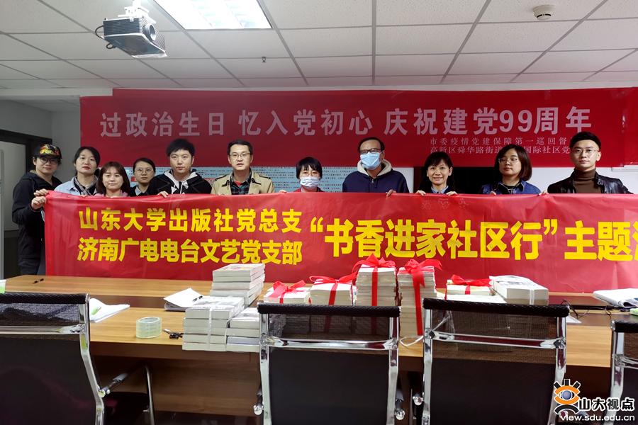 [本站讯]10月28日,山东大学出版社党总支与济南广电电台文艺党支部联合开展“书香进家——社区行”主题公益活动,向济南市高新区舜华路街道凤凰国际社区捐赠图书。