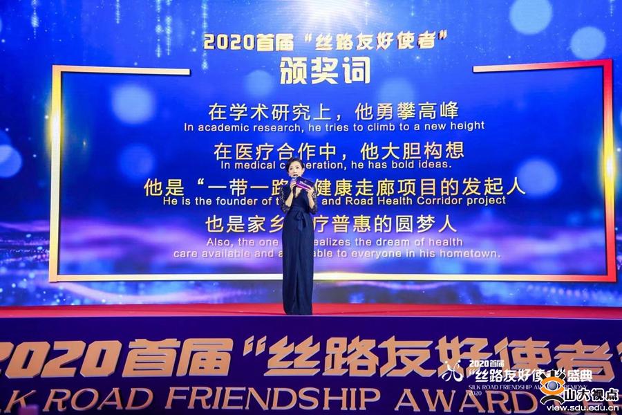 [本站讯]近日,由中国国际文化交流中心主办、人民日报《环球人物》杂志社承办的2020首届“丝路友好使者”颁奖活动在北京举行。山东大学校友Muhammad Shahbaz获“丝路友好使者”称号。