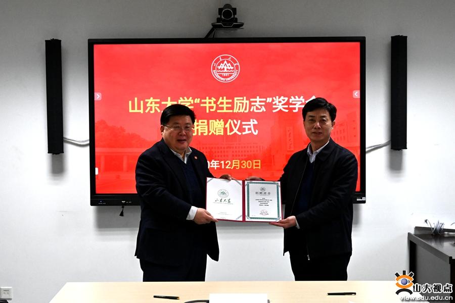 [本站讯]12月30日下午,山东大学“书生励志”奖学金捐赠仪式在中心校区举行。山东康之洁环保技术有限公司向山东大学捐资设立“书生励志”奖学金,用于奖励山东大学品学兼优的本科生。