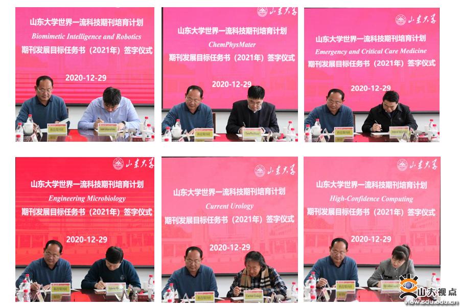 [本站讯]12月29日,山东大学世界一流科技期刊培育计划(即“强刊兴学”计划)期刊发展目标任务书(2021年)签字仪式暨主编联席会在中心校区举行。会议由山东大学科技期刊社社长、出版社社长陈斌主持。入选“强刊兴学”计划的期刊主编团队、科学技术研究院副院长刘德宝参加会议。