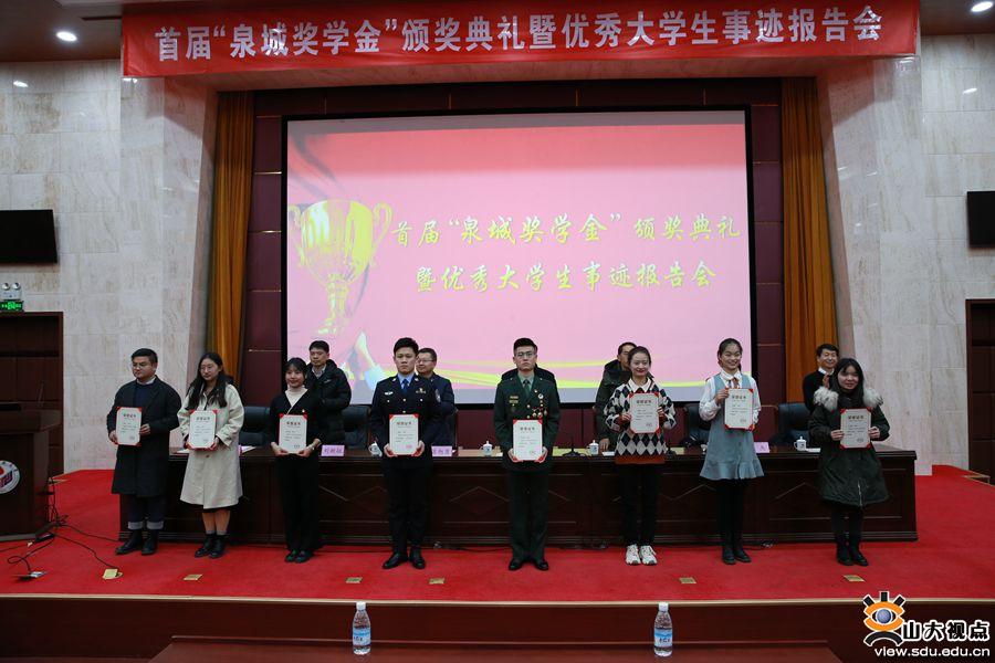 典礼上,与会领导为“泉城奖学金”获奖代表颁发奖状。山东大学获奖学生分别为:历史学院本科生周昊、哲社学院本科生杨舒琪、经济学院本科生闫思宇等16名本科生及微电子学院博士生杨小坤、晶体所博士生杜金恒、历史学院硕士生刘芮等9名研究生。周昊作为学校优秀获奖学生代表在事迹报告会发言中分享了自己在校期间的学习研究、学生工作、以创新方式弘扬沂蒙红色文化的经历。济南市有关部门、44所驻济高校负责人及师生代表等200余人参加活动。