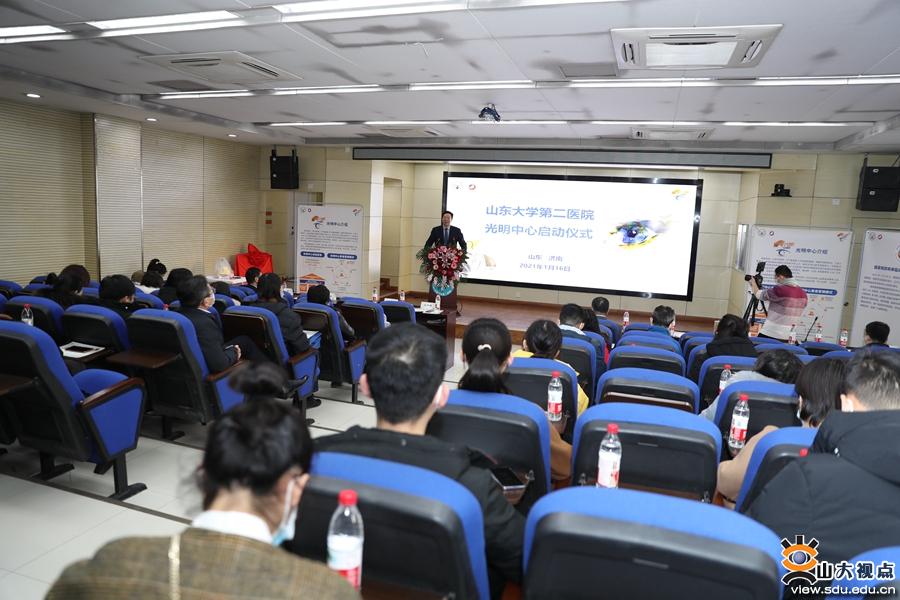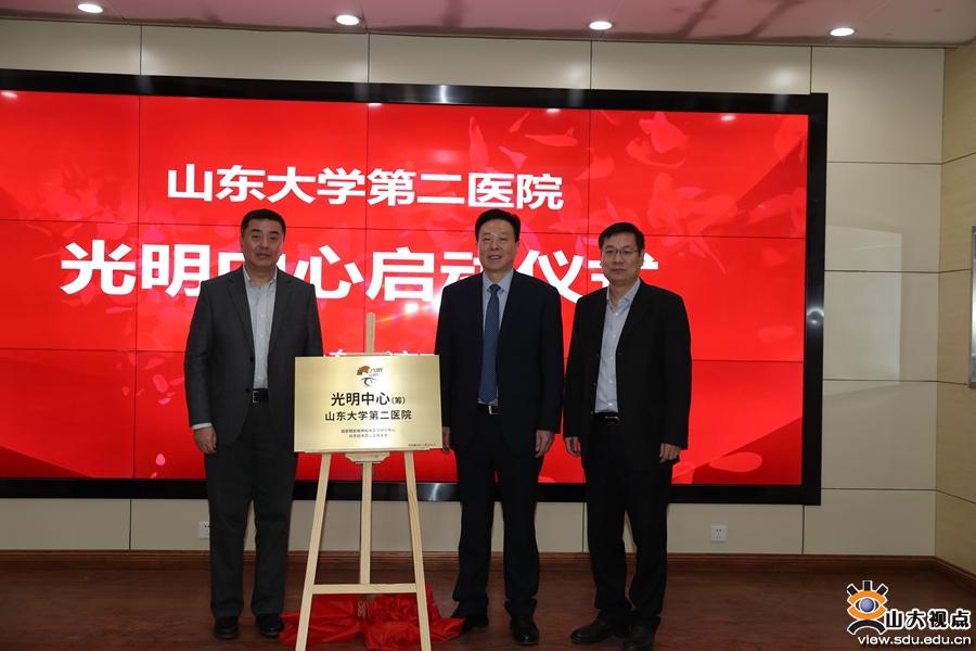 许迅、王传新、张晗共同为山东大学第二医院光明中心揭牌。