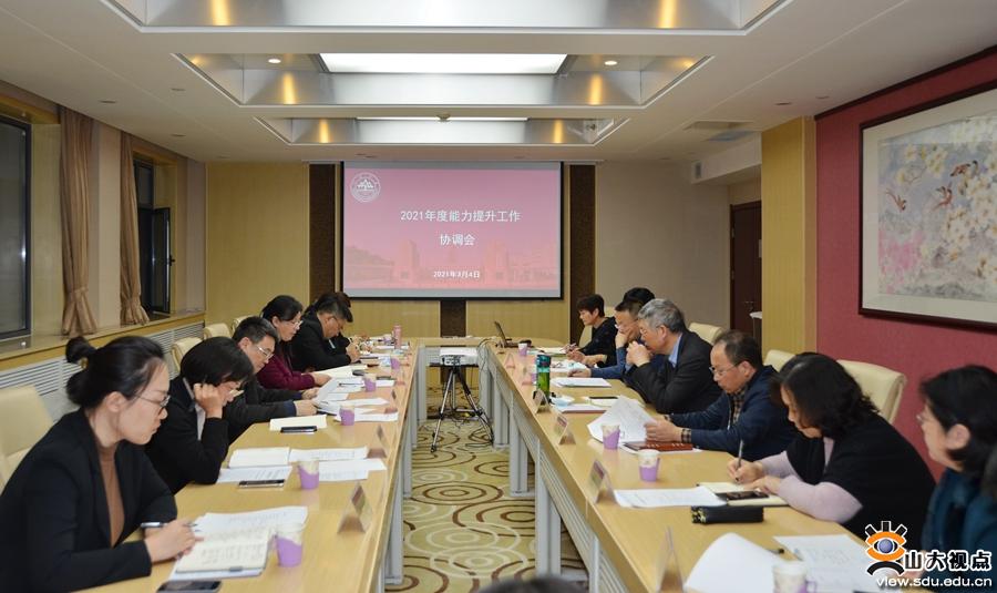 [本站讯]为落实能力提升工作统筹协调机制,科学制定工作计划,扎实推进2021年度教职工能力提升工作,3月4日,山东大学2021年度能力提升工作第一次协调会议在中心校区召开。副校长吴臻出席会议并讲话。