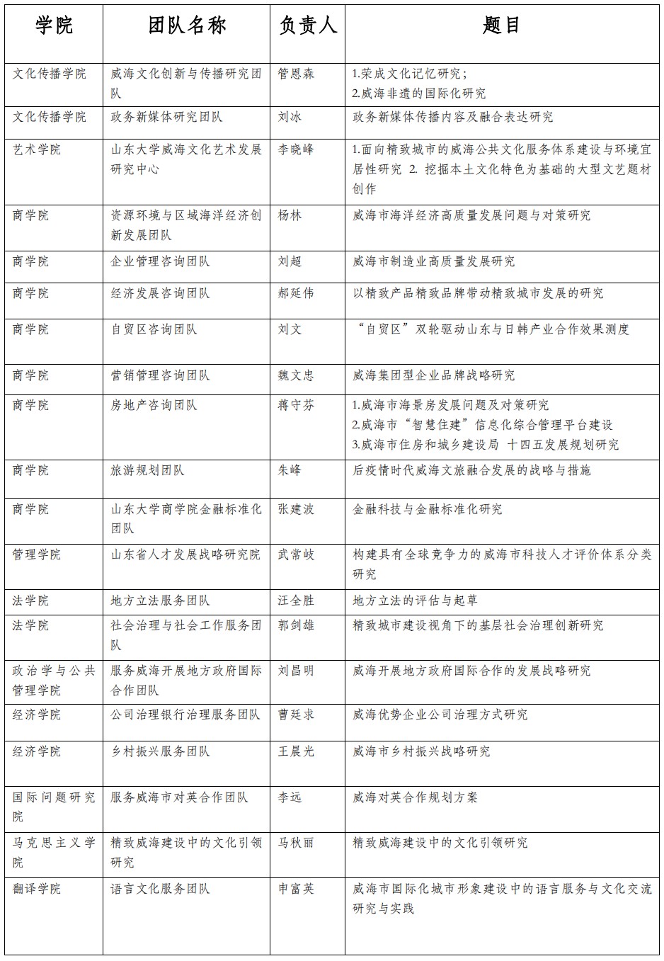 附:山东大学威海发展研究院2021年度立项团队和课题名单