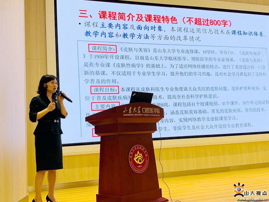 齐鲁医学院教师发展中心“一流课程建设培训项目组”组长、山东省立医院皮肤科主任党宁宁,临床医学院王立祥教授,机械工程学院王震亚教授,基础医学院马雪莲副教授,山东大学团委书记张熙分别从“线上、线下、线上线下混合式、虚拟仿真实验教学和社会实践”五类国家级一流本科课程的个人理解和专业角度向参会者分享了申报与建设体会。五位专家在课程目标、教学内容与组织实施、考核评价、课程特色与创新等申报材料要点方面,就如何体现一流课程的“两性一度”(高阶性、创新性、挑战度)、如何注重医学生知识、能力、素质的培养与提升作出了详细阐释,并就参会教师提出的申报问题进行了一一解答。专家们报告内容丰富详实,讲解风趣幽默,为下一阶段的课程建设与申报工作提供了宝贵经验。