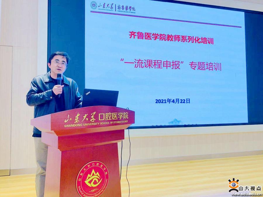 [本站讯]4月22日,齐鲁医学院“一流课程申报”教师培训专题会在趵突泉校区举办,培训会由齐鲁医学院本科教育管理办公室副主任、教师发展中心常务副主任王立祥主持,来自医科各学院的分管本科教学负责人、学系教学主任、教学秘书、承担本科教学工作的任课教师及拟申报第二批国家级一流本科课程的负责人共80余人参会。