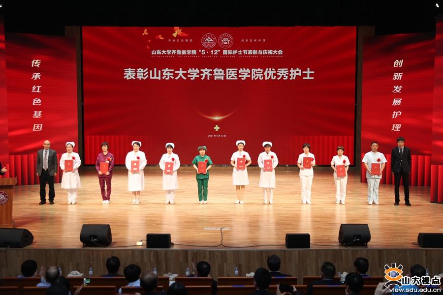 [本站讯]为纪念“5· 12” 国际护士节,弘扬南丁格尔救死扶伤的人道主义精神和援鄂医疗队“抗疫精神”,表彰直属附属医院优秀护理工作者,激励广大护理工作者更好地为患者提供优质服务,5月12日,在第110个国际护士节来临之际,山东大学齐鲁医学院在趵突泉校区梦迪音乐厅召开“5· 12”国际护士节表彰与庆祝大会。山东省卫健委党组成员、副主任、一级巡视员秦成勇,山东大学副校长、齐鲁医学院院长易凡,齐鲁医院党委书记侯俊平出席会议。大会由齐鲁医学院党工委书记刘洪渭主持。大会对2021年度“山东大学齐鲁医学院优秀护士”“山东大学齐鲁医学院优秀护士长”“山东大学齐鲁医学院优秀护理团队”进行了表彰。