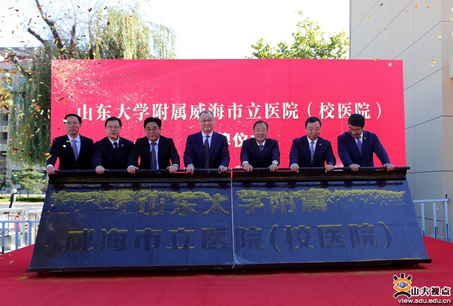 仪式上,与会嘉宾共同为山东大学附属威海市立医院(校医院)揭牌。仪式后,与会嘉宾现场参观了校医院。