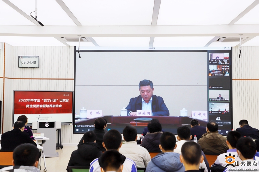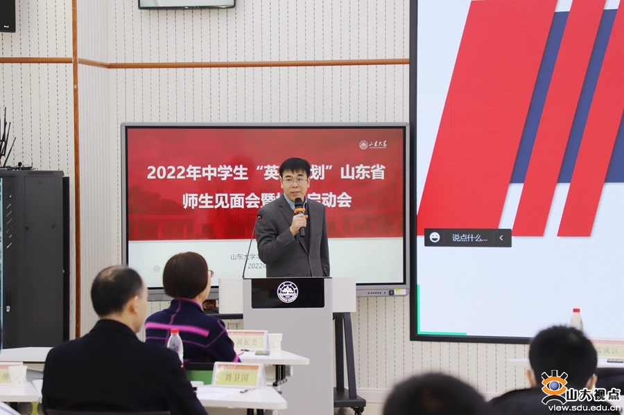[本站讯]1月2日上午,2022年中学生“英才计划”山东省师生见面会暨培养启动会在山东大学举行。山东大学副校长吴臻,省科协党组成员、副主席陈爱国出席会议并致辞。