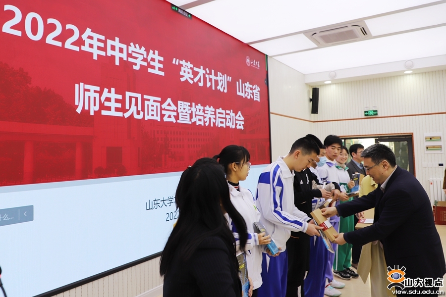 接下来,吴臻为新学员一一赠送了印有山东大学标志的学习用品,各学科导师为新一届英才学员赠送了书籍。