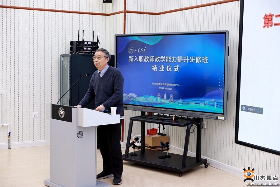 [本站讯]1月12日,山东大学2021年新入职教师教学能力提升研修班结业仪式在中心校区举行。山东大学副校长吴臻出席仪式并致辞。本次研修班共有183名新入职教师参加培训,培训期间学员们分为21个线上研修小组,33个微格教学演练小组,30个线下研讨小组,学校一校三地60多位优秀骨干教师承担主讲或指导任务,46名教师获评优秀学员。
