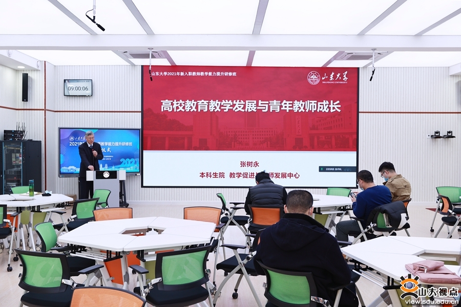 研修班开班和结业仪式上共举行了三场“教学生涯规划”专题讲座。学校材料科学与工程学院教授、国家级教学名师、山东大学教学终身成就奖获得者孙康宁以“教学研究与教学成果奖的组织凝炼”为题,阐述了教育教学研究中如何发现、分析和解决问题,提出建设集成多功能的新形态课程,有效解决了传统课程形态功能单一的问题,并结合所获国家级教学成果一等奖的经验,引导新教师积极开展教学研究和教学创新。教学促进与教师发展中心主任张树永介绍了高等教育教学的发展趋势和山东大学的育人传统,明确了青年教师从合格教师、优秀/骨干、教学名师到教育家型教师的发展路径,阐述了各层次的教学能力特征,强调开展教学研究的重要意义,期望青年教师在教学中充分发挥创造性,不断提高教学水平和课程教学质量。计算机科学与技术学院副院长彭朝晖以“青年教师教学进阶与一流课程建设”为题,结合自己的成长经历和一流课程建设申报经验,说明在课程建设中如何定位改革目标、创新教学方法和课程评价方式、融合思政教育元素,以及如何达成教学科研的良好互动。